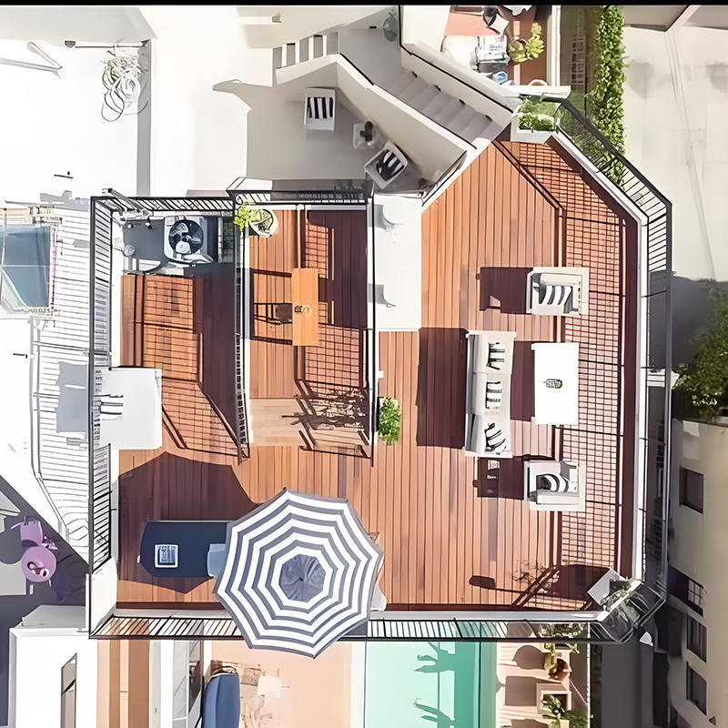 Udendørs strandvævet bambusterrasse